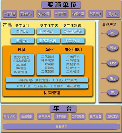 蘭石(shi)集團(tuan)通過與(yu)數(shu)碼大方(fang)公司合(he)作,進行總體規(gui)劃,建立蘭石(shi)集團(tuan)統(tong)(tong)一(yi)(yi)(yi)(yi)的(de)(de)CAD/PDM/CAPP/MES/ERP信息(xi)(xi)(xi)(xi)化系統(tong)(tong)與(yu)研發(fa)、管(guan)(guan)理(li)(li)平臺,實現蘭石(shi)集團(tuan)各子公司和全(quan)(quan)國基地(di)、研究院的(de)(de)全(quan)(quan)業(ye)務集成貫通,實現分布(bu)式(shi)協同(tong)制造能力以及(ji)智(zhi)能化產(chan)品(pin)研發(fa)、制造與(yu)管(guan)(guan)理(li)(li)基礎(chu)。蘭石(shi)集團(tuan)制定了“一(yi)(yi)(yi)(yi)個(ge)(ge)原則(ze)、六個(ge)(ge)統(tong)(tong)一(yi)(yi)(yi)(yi)”(一(yi)(yi)(yi)(yi)個(ge)(ge)原則(ze)是:控(kong)制權上(shang)收(shou)、經營權下放;六個(ge)(ge)統(tong)(tong)一(yi)(yi)(yi)(yi)是:戰略統(tong)(tong)一(yi)(yi)(yi)(yi)管(guan)(guan)理(li)(li)、品(pin)牌統(tong)(tong)一(yi)(yi)(yi)(yi)管(guan)(guan)理(li)(li)、財務統(tong)(tong)一(yi)(yi)(yi)(yi)管(guan)(guan)理(li)(li)、投(tou)資(zi)統(tong)(tong)一(yi)(yi)(yi)(yi)管(guan)(guan)理(li)(li)、人事(shi)統(tong)(tong)一(yi)(yi)(yi)(yi)管(guan)(guan)理(li)(li)、內控(kong)統(tong)(tong)一(yi)(yi)(yi)(yi)管(guan)(guan)理(li)(li))的(de)(de)管(guan)(guan)理(li)(li)核(he)心,并對(dui)信息(xi)(xi)(xi)(xi)化建設的(de)(de)長期性(xing)和艱巨(ju)性(xing)有(you)比較清晰的(de)(de)認識,要求(qiu)通過整體的(de)(de)、有(you)前瞻性(xing)的(de)(de)信息(xi)(xi)(xi)(xi)化規(gui)劃來規(gui)避(bi)企業(ye)未來在信息(xi)(xi)(xi)(xi)化發(fa)展歷程中由于外部約束或者內部要求(qiu)的(de)(de)不適應以及(ji)缺乏統(tong)(tong)一(yi)(yi)(yi)(yi)架構、信息(xi)(xi)(xi)(xi)化孤(gu)島、重復(fu)投(tou)資(zi)等諸多問題(ti)。