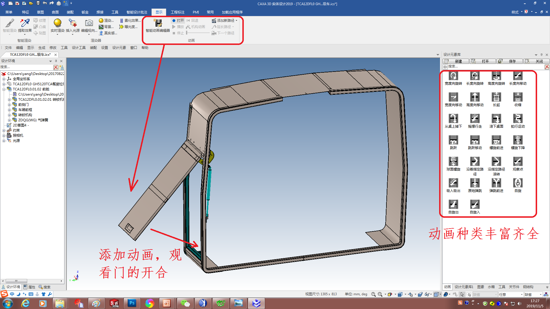 8、裝配完成后根據約束關系,并添加動(dong)畫(hua)效果(guo),可(ke)預覽設計動(dong)態,可(ke)評估有無干涉等;