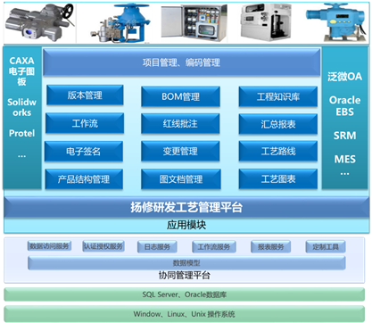 對產品研發及生產的全生命周期業務過程進行統一管理。