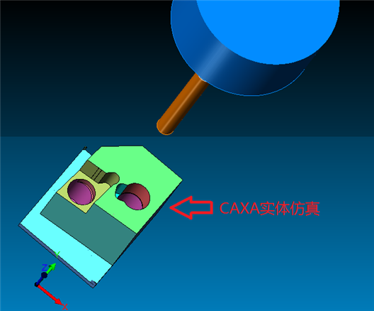 生成加工軌跡后,利用CAXA制造工程師的加工仿真功能,進行實體加工仿真驗證,經過驗證,刀具軌跡正確。