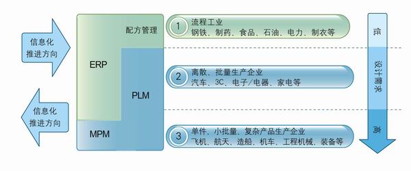 所以,PLM和ERP分別側重服務于不同類型的制造業。ERP側重在流程制造業,如鋼鐵、石油、電力、制藥等,而PLM更側重在離散制造業,如飛機、汽車、裝備、3C產品(通訊、消費品和計算機)等。沒有PLM提供的產品數據,尤其是復雜產品的數據,則ERP很難針對這類企業實施企業資源管理,ERP的價值也無法表現出來。