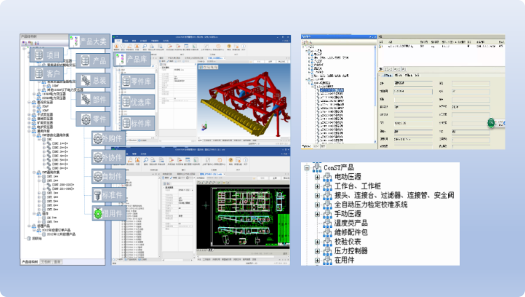 包括圖文檔管(guan)理(li)(li)EDM、產(chan)品(pin)數(shu)據(ju)管(guan)理(li)(li)PDM、工藝數(shu)據(ju)管(guan)理(li)(li)CAPP、產(chan)品(pin)全生命周期管(guan)理(li)(li)PLM等產(chan)品(pin)