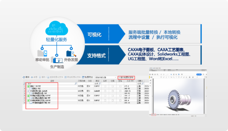 具有CAD核心技術,開(kai)發了信息提取組(zu)件(jian)和可(ke)(ke)視化瀏覽組(zu)件(jian),PLM能夠(gou)與各種(zhong)二(er)、三(san)維CAD實現緊(jin)密集(ji)成(cheng),可(ke)(ke)支持的CAD種(zhong)類更(geng)全、CAD版本最新、集(ji)成(cheng)能力更(geng)強。