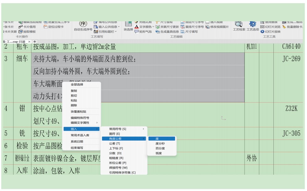 工藝(yi)圖(tu)表支(zhi)持(chi)(chi)對卡(ka)片中的(de)文字等(deng)進行編輯(ji)和修改(gai);提供(gong)各種特殊的(de)CAD工程符(fu)號,能夠直接填寫與編輯(ji)。支(zhi)持(chi)(chi)公(gong)(gong)差(cha)、上下標(biao)、分數、粗糙度、形位公(gong)(gong)差(cha)、角度、焊(han)接符(fu)號等(deng)的(de)插(cha)入(ru)(ru)。在插(cha)入(ru)(ru)公(gong)(gong)差(cha)時(shi)(shi),支(zhi)持(chi)(chi)國標(biao)的(de)公(gong)(gong)差(cha)查(cha)詢。對于手動輸入(ru)(ru)的(de)上下偏差(cha)數值寫反(fan)時(shi)(shi),系(xi)統會自動糾錯。