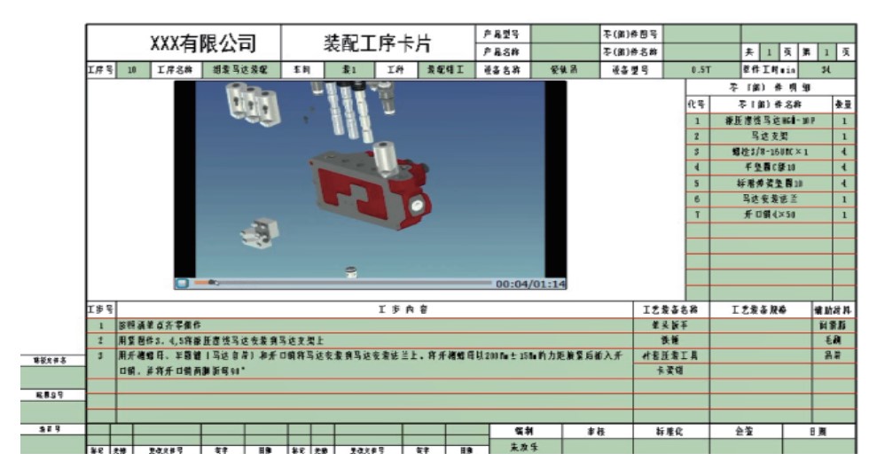 工(gong)(gong)(gong)藝卡(ka)片不僅支持(chi)dwg、dxf、exb等CAD格式圖形的(de)(de)插(cha)入, 還(huan)支持(chi)圖片、視(shi)頻(pin)的(de)(de)插(cha)入。插(cha)入的(de)(de)視(shi)頻(pin)支持(chi)直(zhi)(zhi)接播(bo)放,直(zhi)(zhi)觀的(de)(de)顯示方(fang)(fang)式,方(fang)(fang)便(bian)工(gong)(gong)(gong)藝瀏(liu)覽(lan)人(ren)員對工(gong)(gong)(gong)藝的(de)(de)理解。同時,生成的(de)(de)工(gong)(gong)(gong)藝卡(ka)片在通過CAXA組(zu)件瀏(liu)覽(lan)時,也支持(chi)視(shi)頻(pin)的(de)(de)播(bo)放,方(fang)(fang)便(bian)可視(shi)化(hua)工(gong)(gong)(gong)藝直(zhi)(zhi)接在車(che)間的(de)(de)電(dian)子發放。