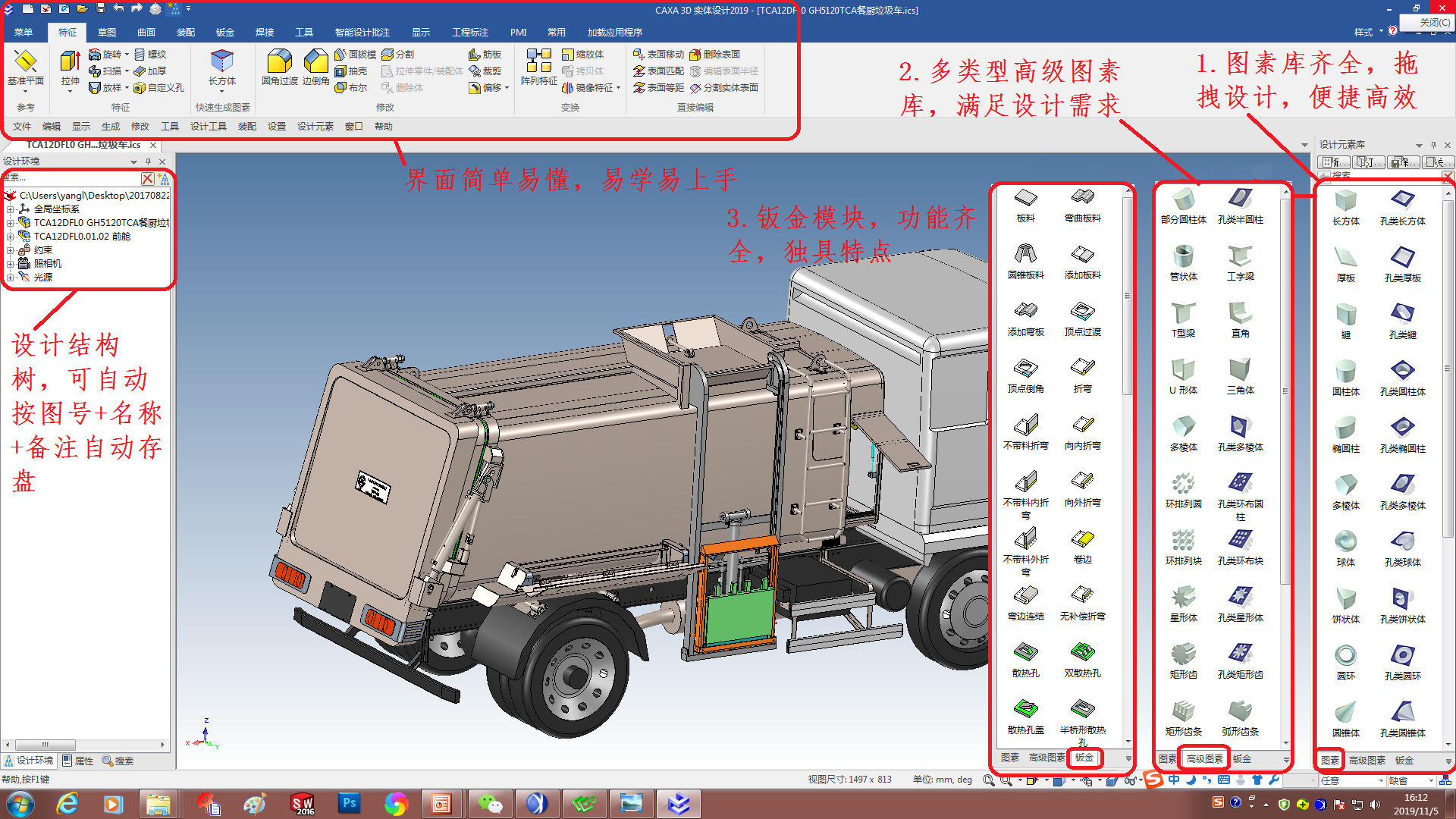 下(xia)面是(shi)廣環(huan)廠通過一輛垃圾車的設計(ji)過程,展示(shi)了CAXA 3D實(shi)體設計強悍的特色功能。