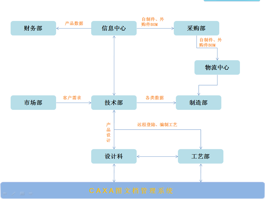 我們公司購買了CAXA圖文檔管理軟件,相當于一個電子倉庫,可以將本公司所用電子文檔放置進去,查詢方便,而且其權限設置比較嚴密;而且使圖紙唯一性,減少出錯率;資源共享,查詢方便。用CAXA電子圖板繪圖,材料清單更易于提取。為金蝶K3 ERP提供了底層BOM數據。