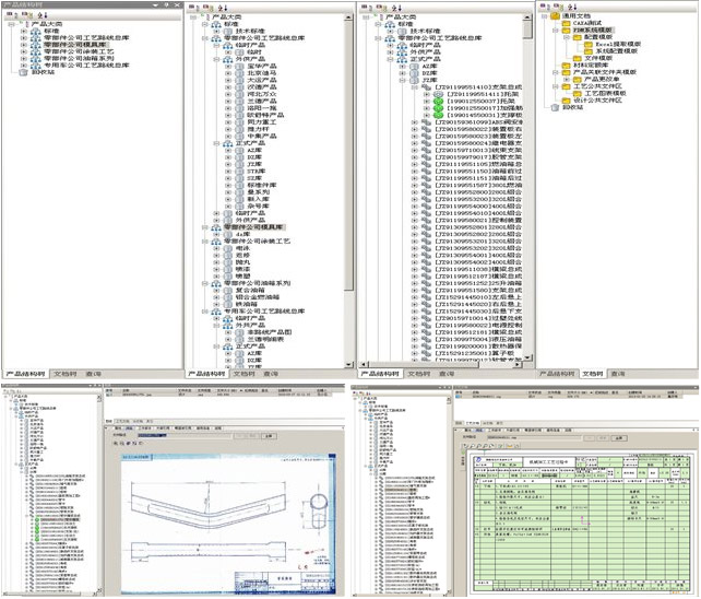 以模塊、產品系列為核心,建立了15類30系列 對企業產品外來圖紙、研發圖紙、工藝數據集中有效的管理。建立了研發部門、工藝部門、生產部門快捷的數據通道和溝通手段,實現設計、工藝、生產一體化管理,直觀的企業產品分類;直觀的產品零部件結構關系,直觀的有層次的管理了技術文檔,產品技術準備周期由以前30月縮短到10天。